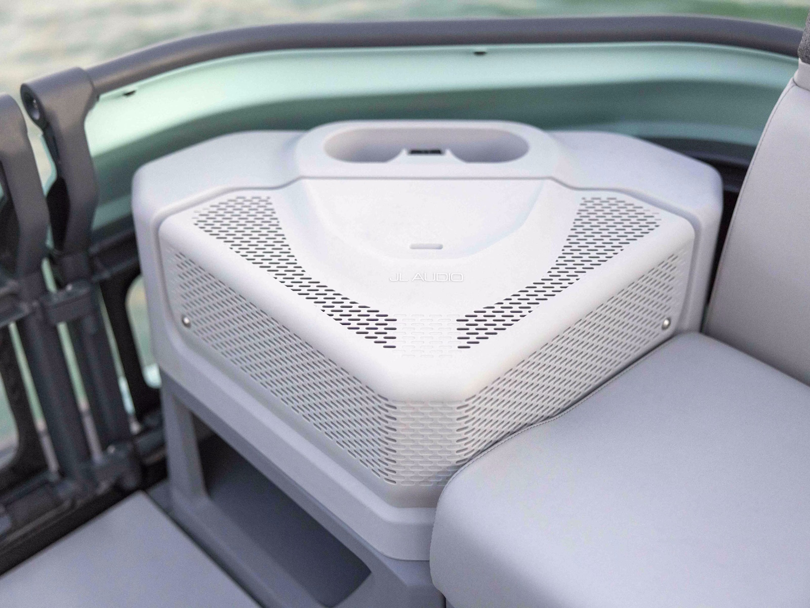 A premium JL Audio system interfaces with the 10.25” touchscreen display. Enjoy a premium and intuitive design with marine navigation via the BRP GO! app, music management, software updates via Wi-Fi and more. Pair your device, crank up your favorite tunes, and get the pontoon party started. - Tri-Hull Design
