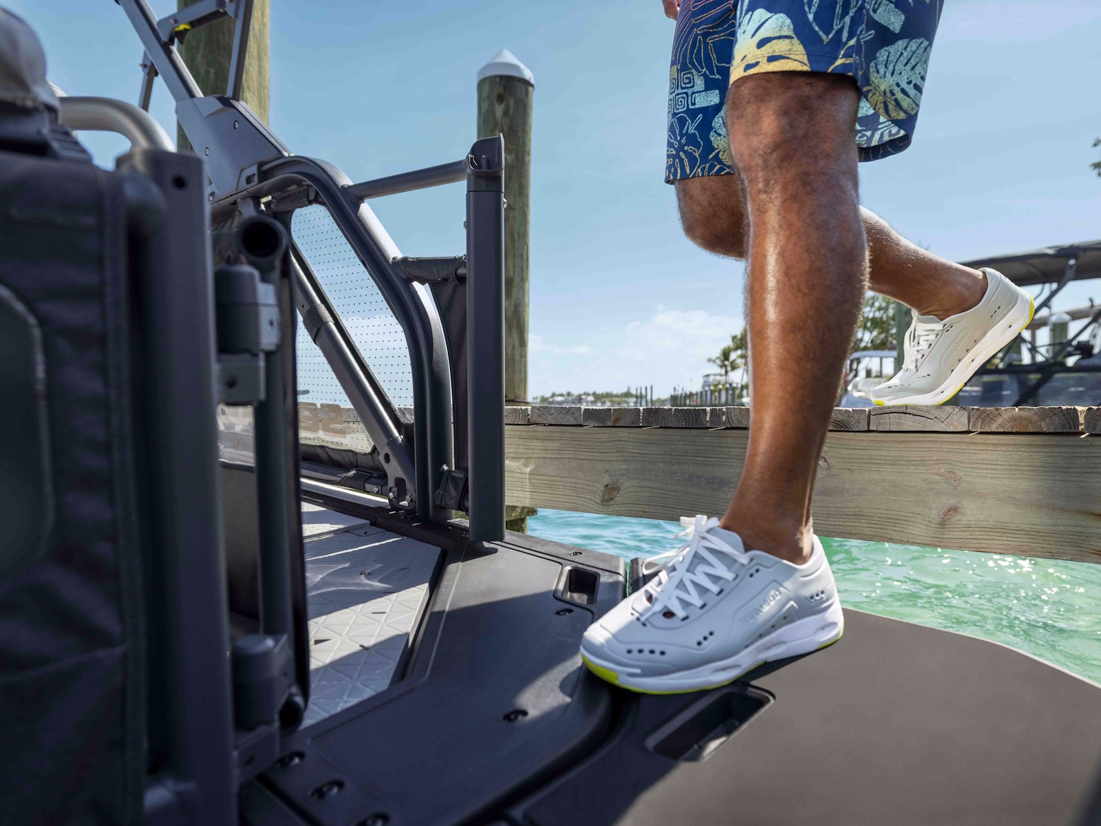 - When the ride calls for a cool down, this sturdy Bimini top deploys in seconds. The aluminum frame and high-grade marine canvas offer essential protection from sun and the elements.