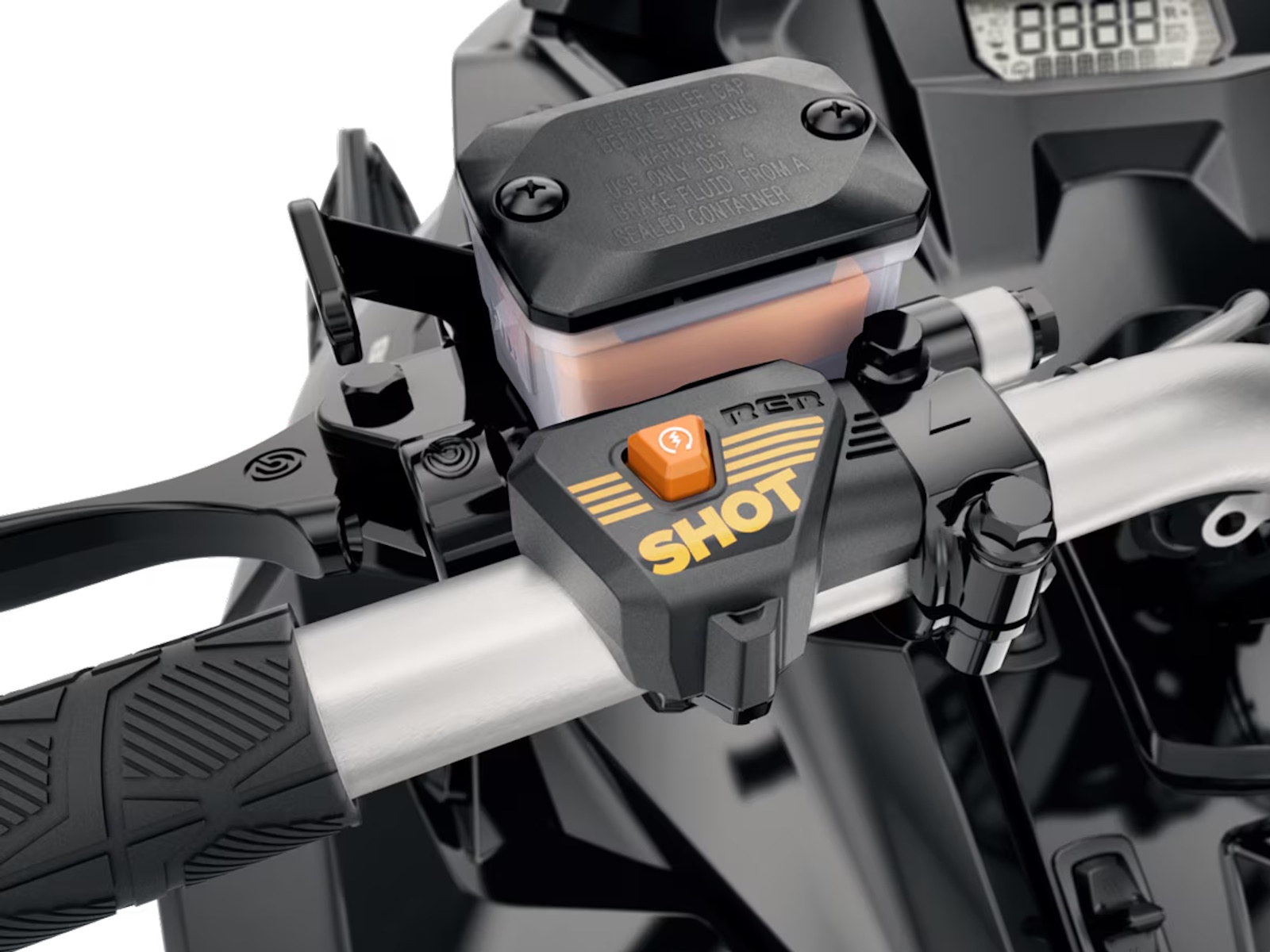 - E-TEC SHOT Starter: Push-button starting with almost no added weight. After an initial pull-start, the engine charges an ultracapacitor. Pushing the handlebar SHOT button for subsequent starts the rest of the day. Eliminates nearly 20 lb. (9 kg). Only possible with E-TEC technology.