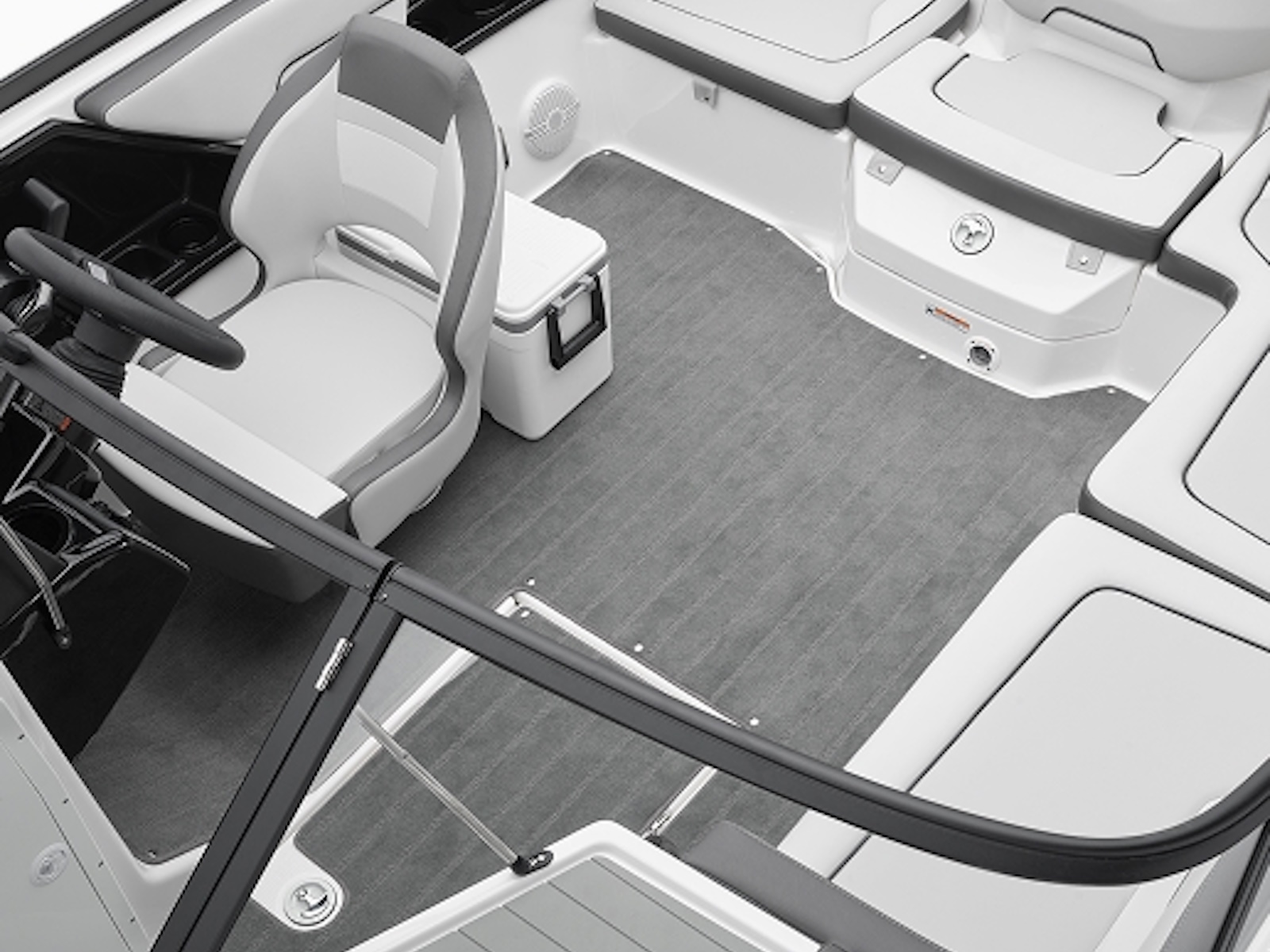 - The expertly designed deck maximizes space, offering unmatched comfort and roominess in a 19-foot boat.
