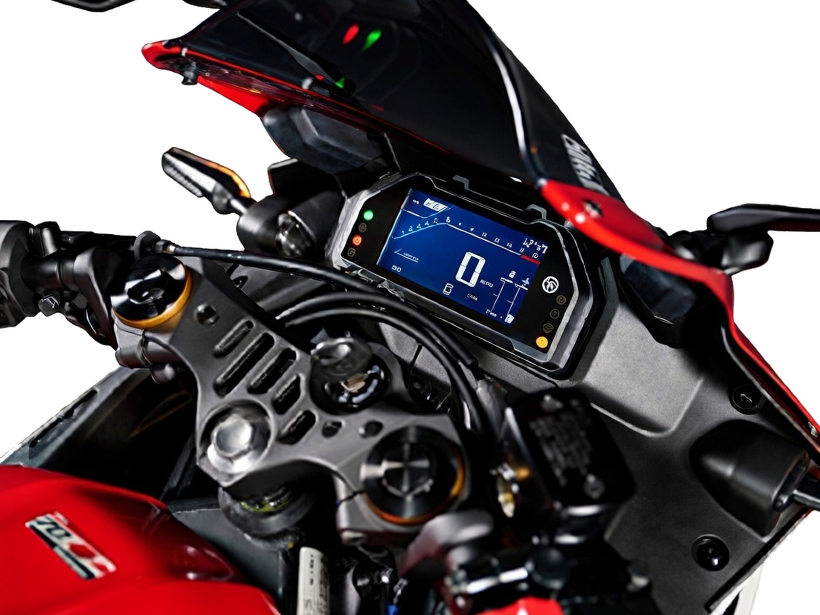 - An LCD instrument cluster displays connected smartphone information along with vital vehicle data. There is also a USB-A socket located next to the display providing convenient power for phone charging or heated gear.